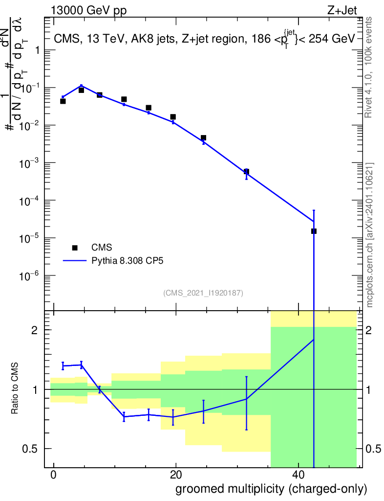 Lines: data, pythia8 8.308 CP5 |