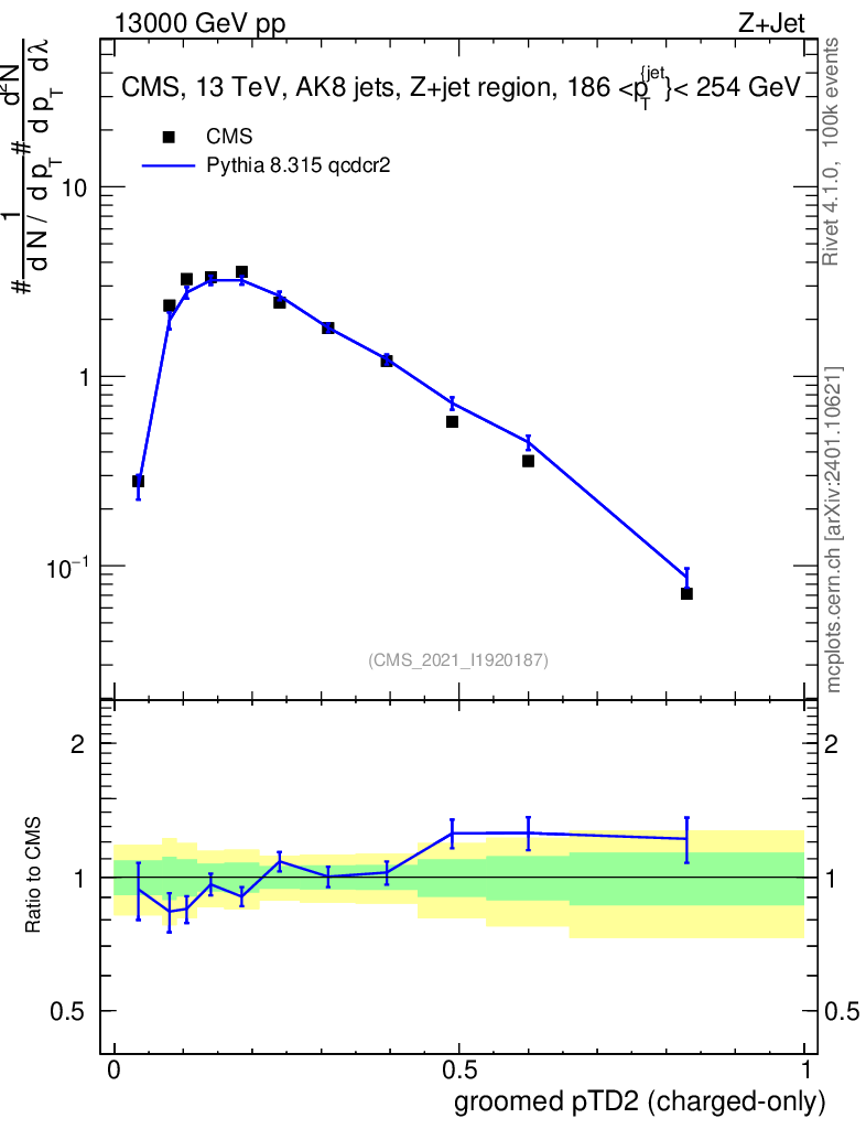 Lines: data, pythia8 8.315 qcdcr2 |