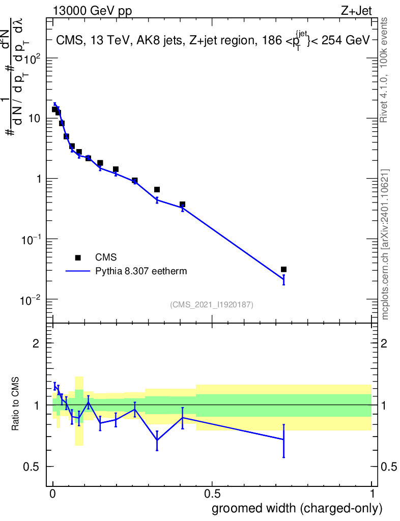 Lines: data, pythia8 8.307 eetherm |