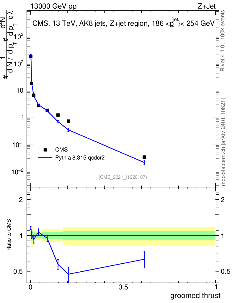 Lines: data, pythia8 8.315 qcdcr2 |