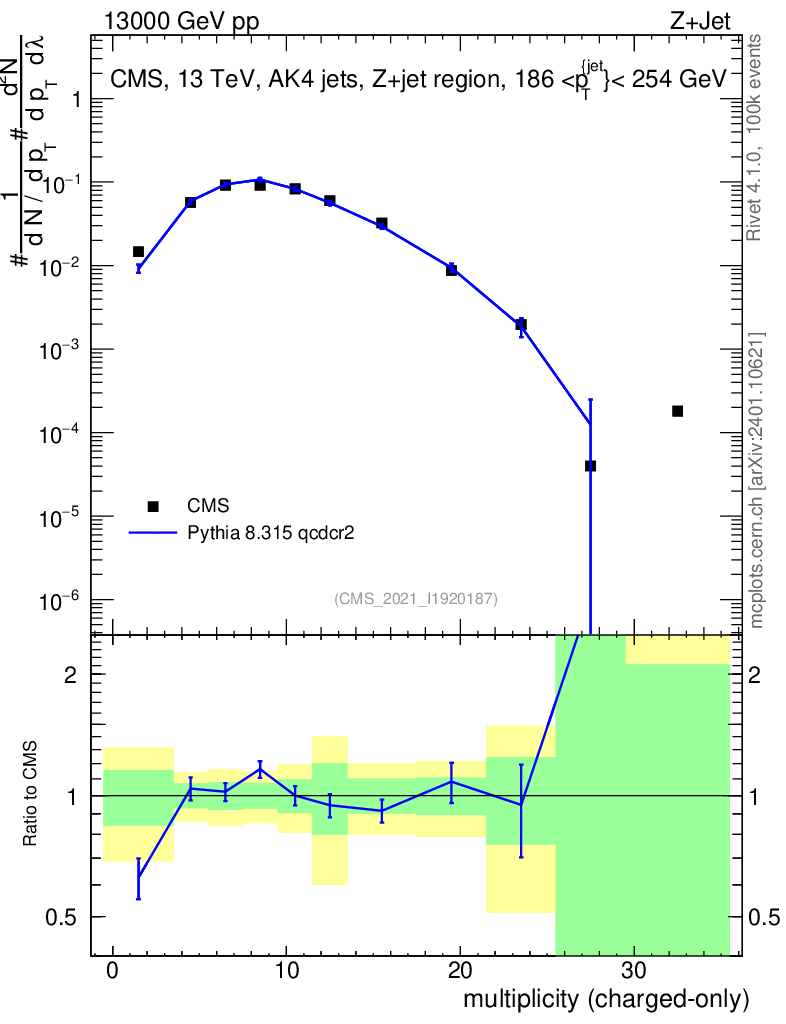 Lines: data, pythia8 8.315 qcdcr2 |