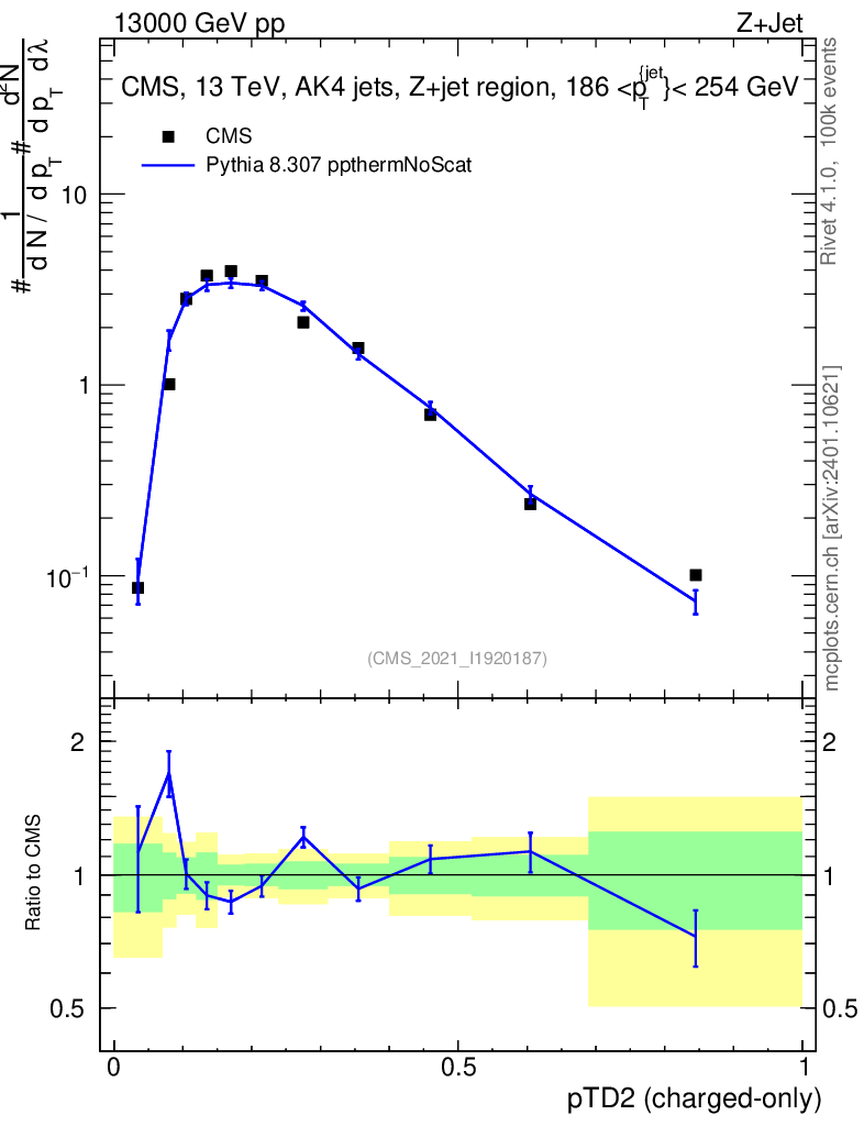 Lines: data, pythia8 8.307 ppthermNoScat |