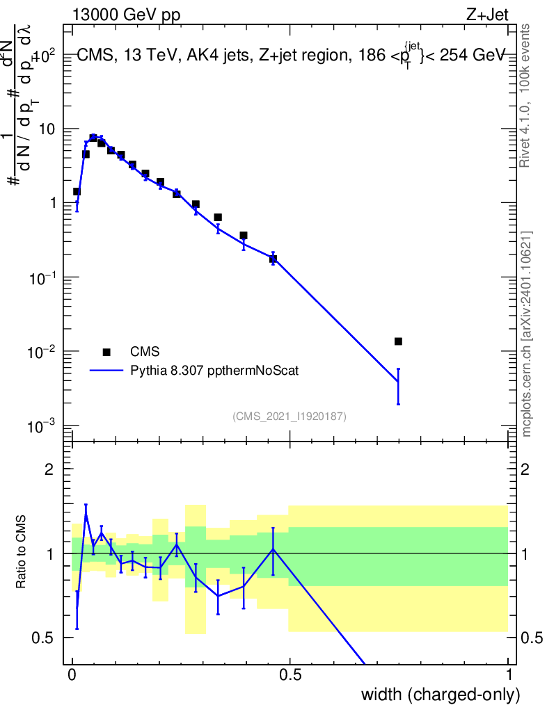 Lines: data, pythia8 8.307 ppthermNoScat |