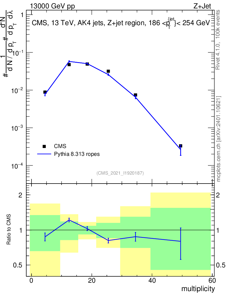 Lines: data, pythia8 8.313 ropes |
