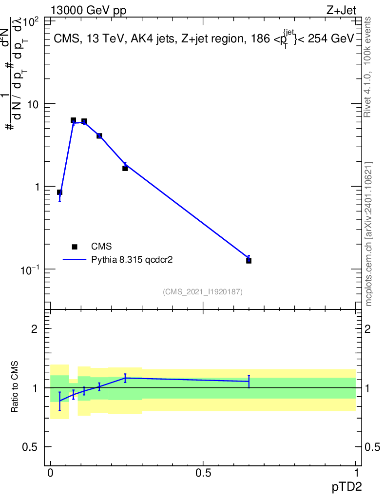 Lines: data, pythia8 8.315 qcdcr2 |