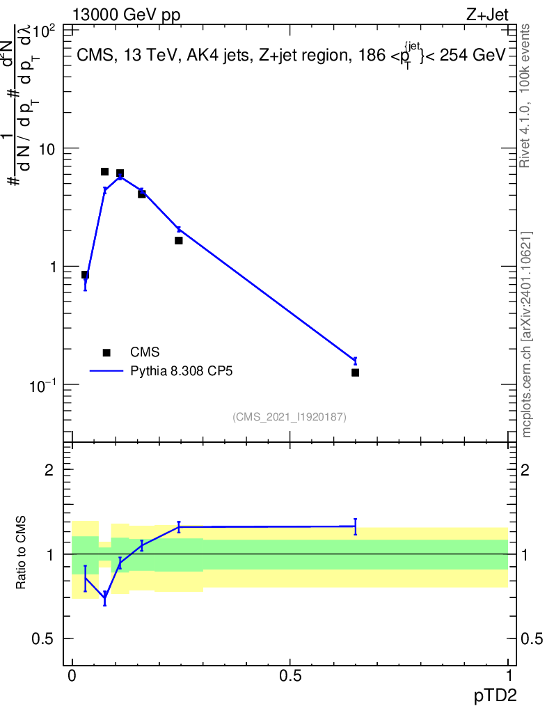 Lines: data, pythia8 8.308 CP5 |