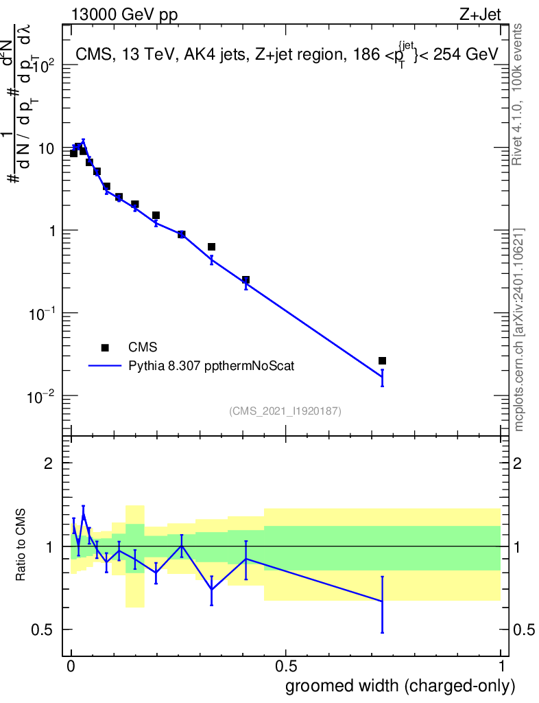 Lines: data, pythia8 8.307 ppthermNoScat |