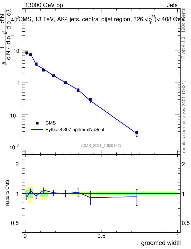 Lines: data, pythia8 8.307 ppthermNoScat |
