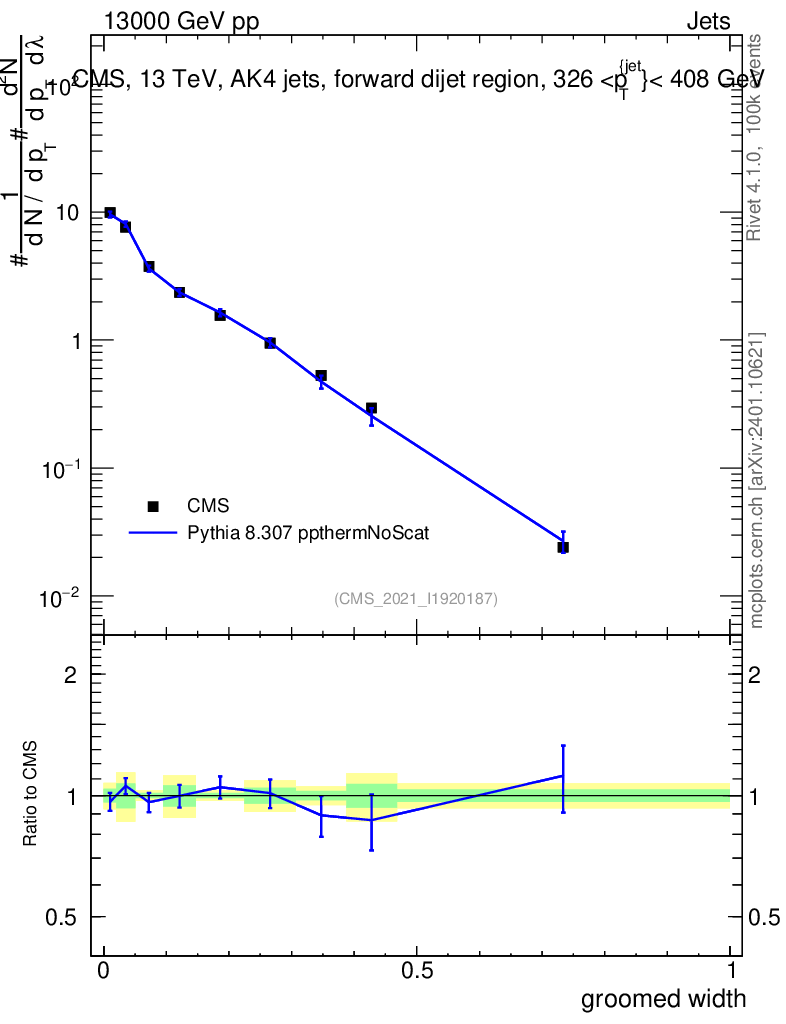 Lines: data, pythia8 8.307 ppthermNoScat |