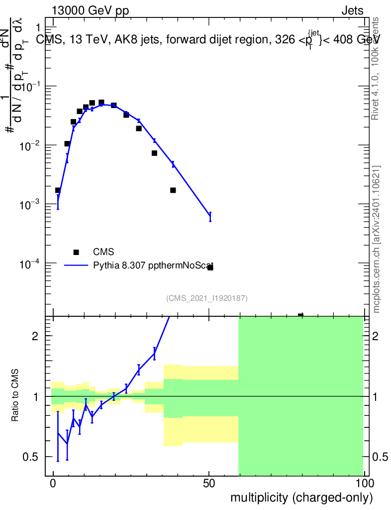 Lines: data, pythia8 8.307 ppthermNoScat |