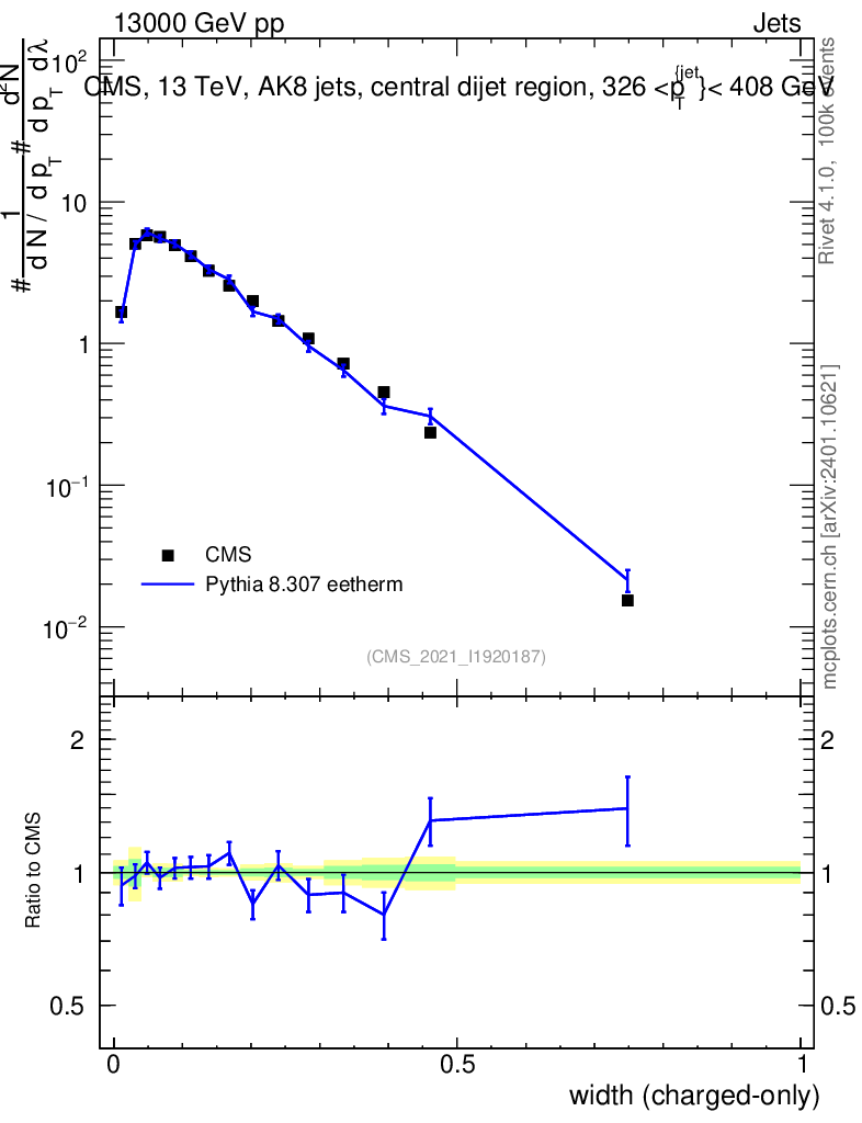 Lines: data, pythia8 8.307 eetherm |