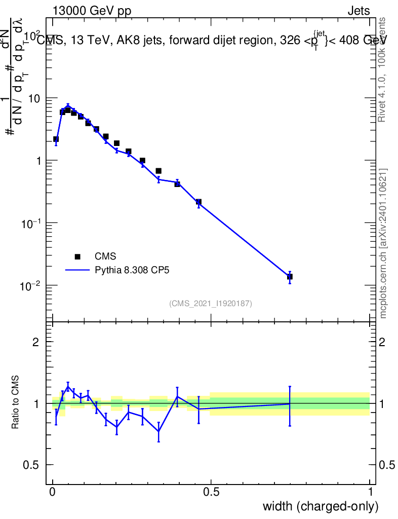 Lines: data, pythia8 8.308 CP5 |