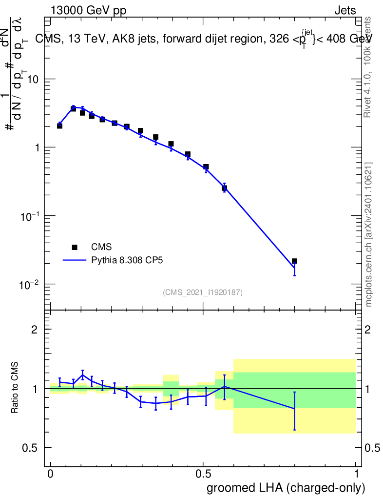 Lines: data, pythia8 8.308 CP5 |