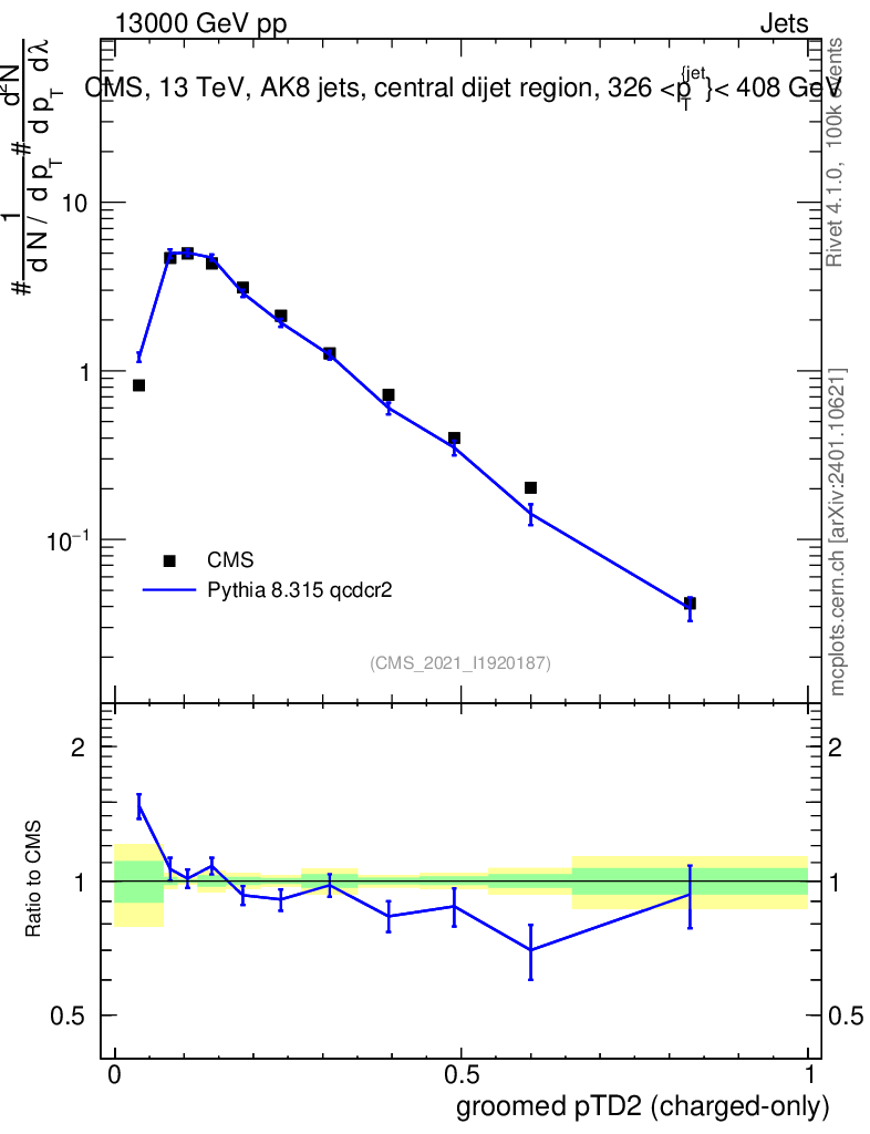 Lines: data, pythia8 8.315 qcdcr2 |