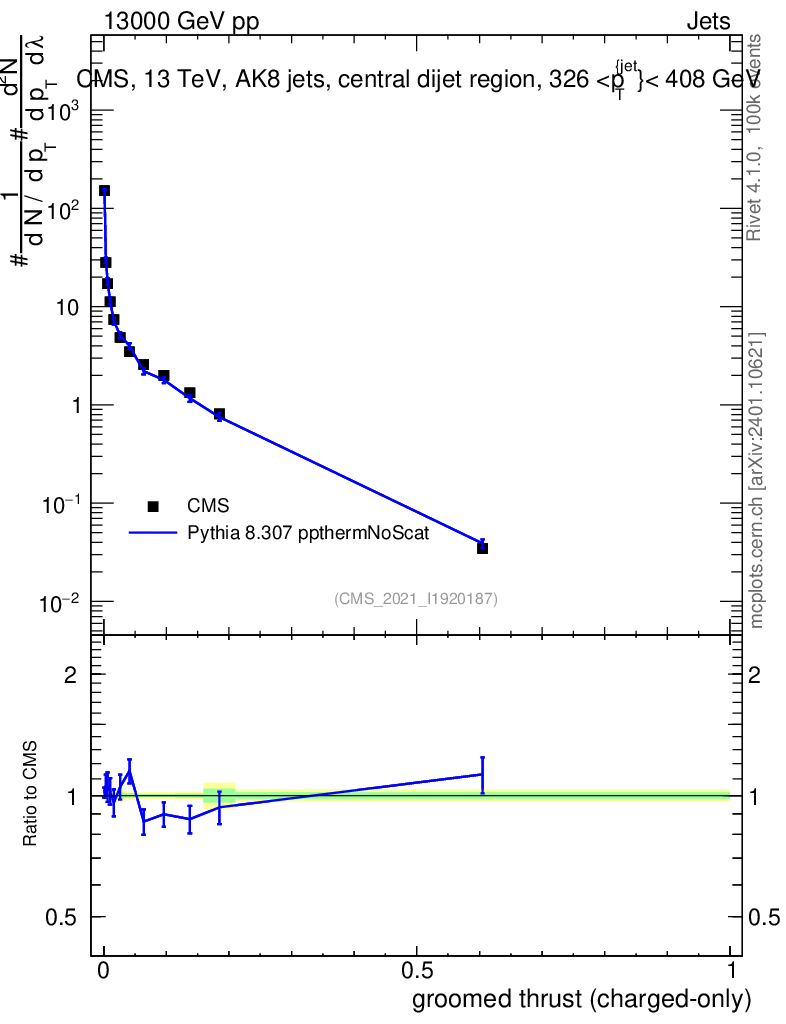 Lines: data, pythia8 8.307 ppthermNoScat |
