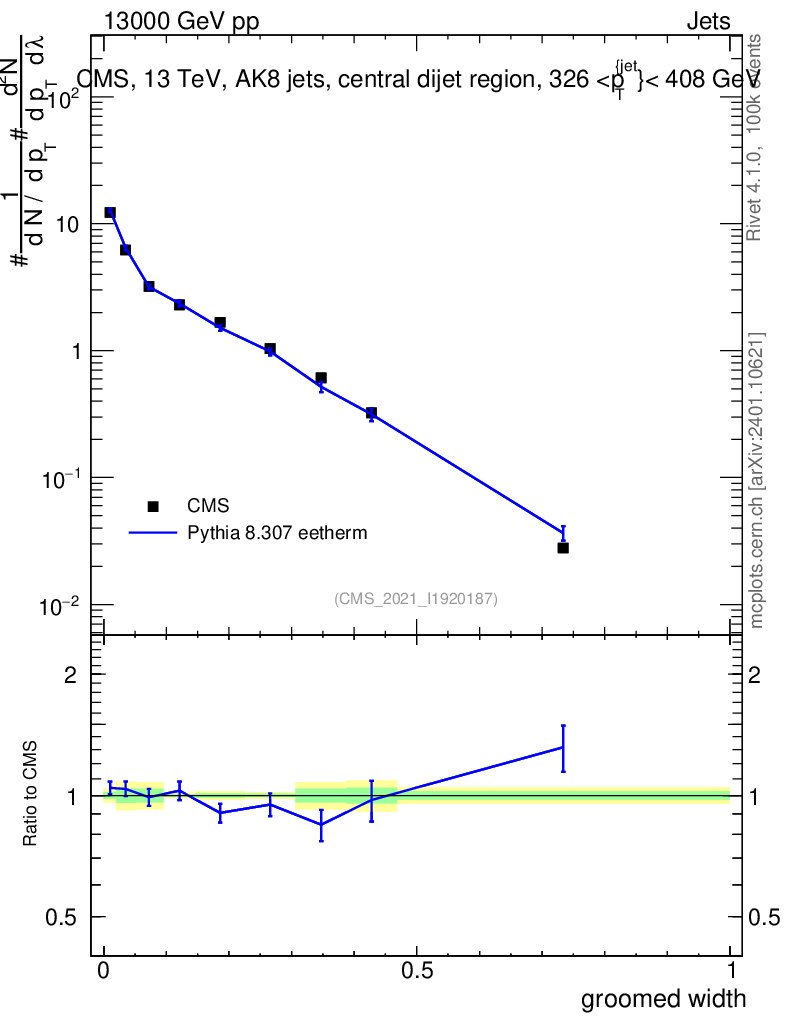 Lines: data, pythia8 8.307 eetherm |