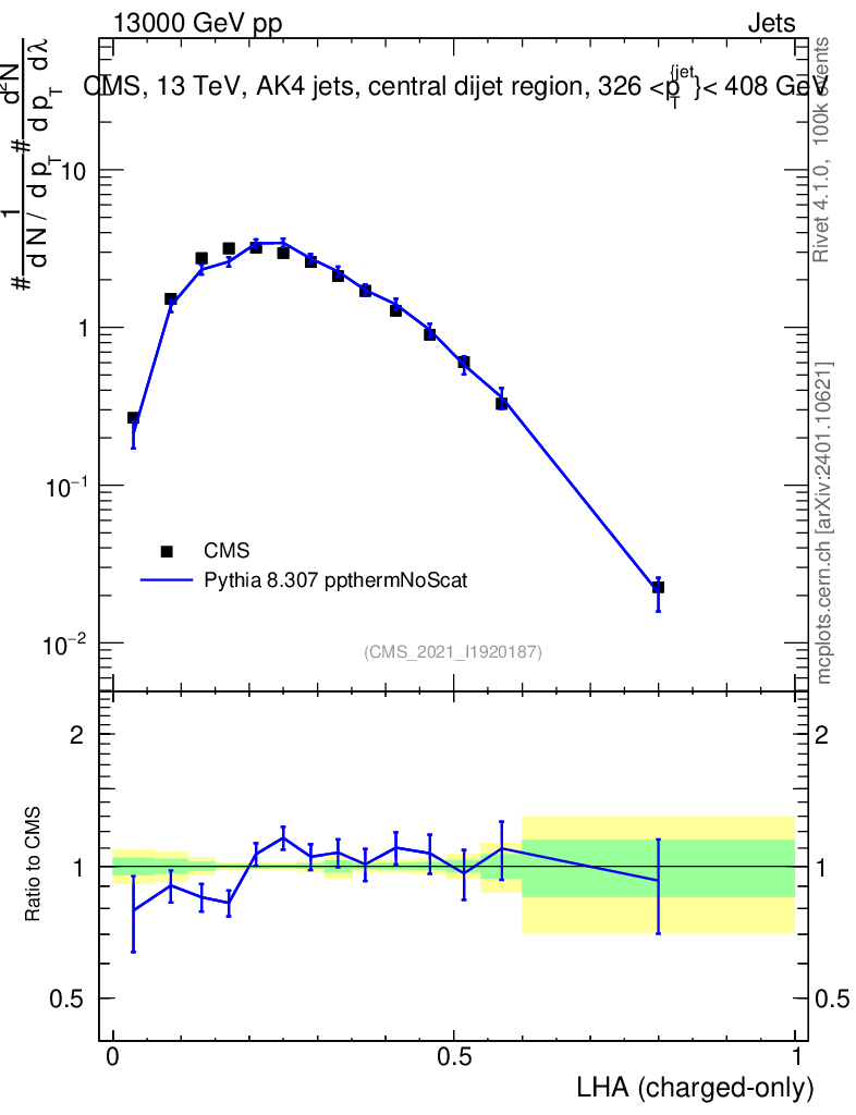 Lines: data, pythia8 8.307 ppthermNoScat |