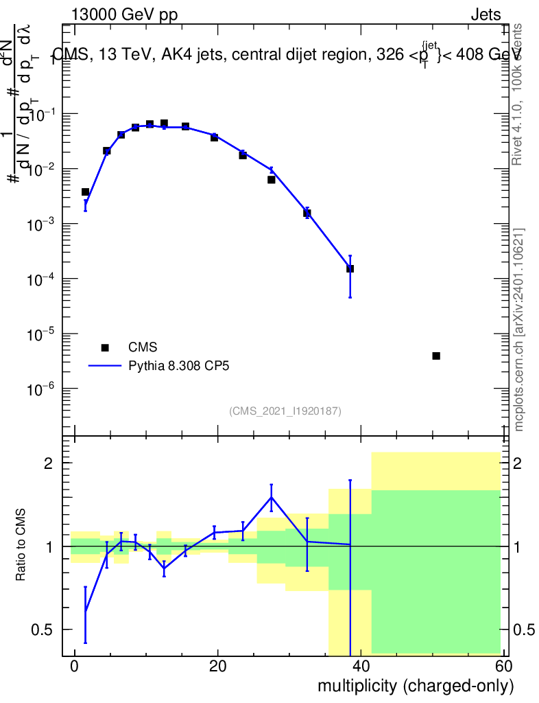 Lines: data, pythia8 8.308 CP5 |