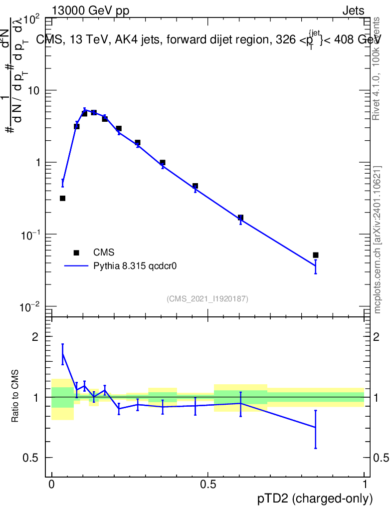 Lines: data, pythia8 8.315 qcdcr0 |