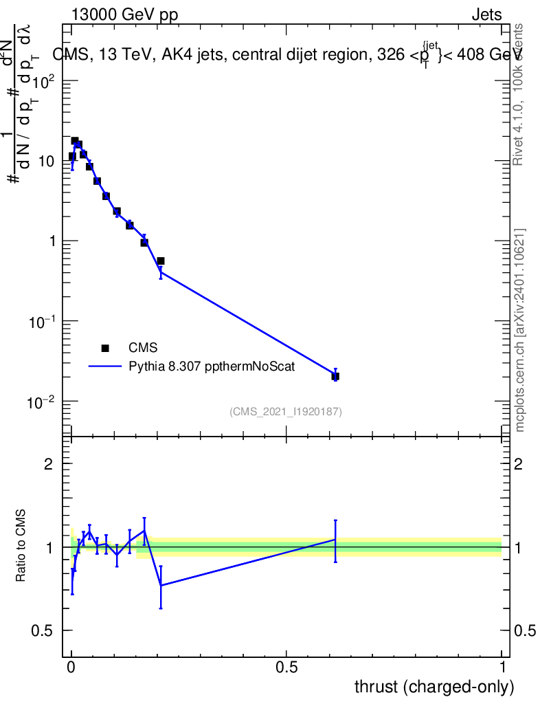 Lines: data, pythia8 8.307 ppthermNoScat |