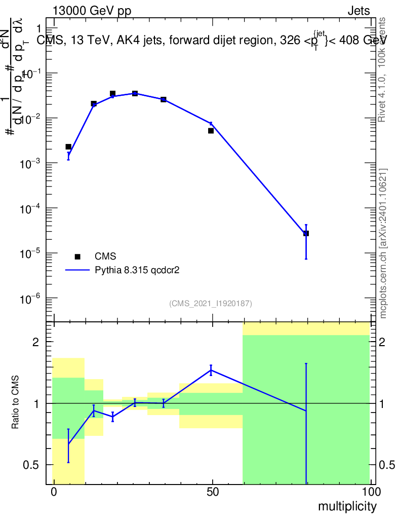 Lines: data, pythia8 8.315 qcdcr2 |