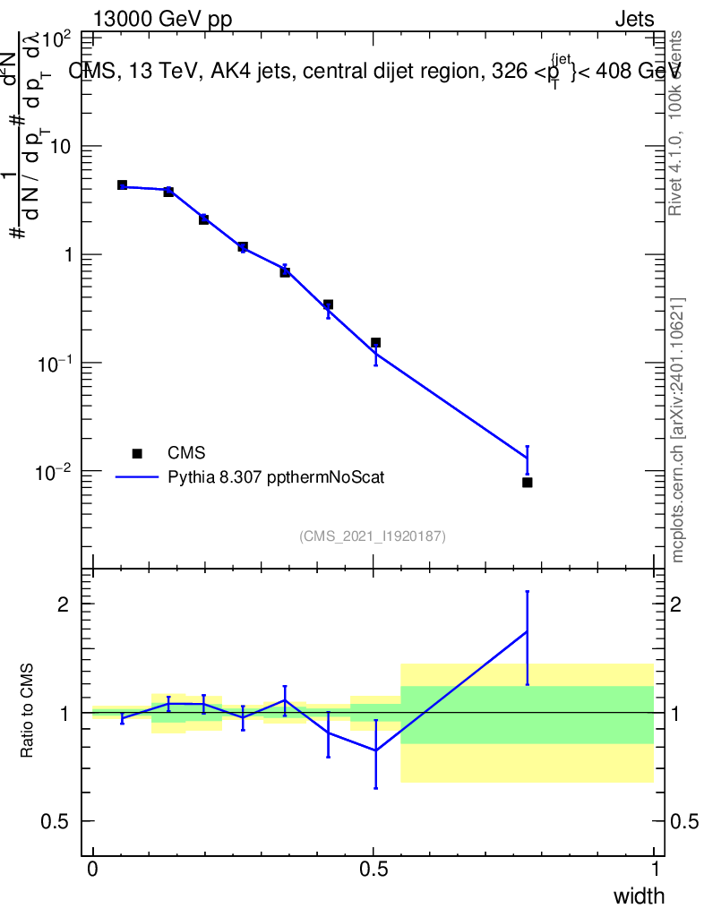 Lines: data, pythia8 8.307 ppthermNoScat |