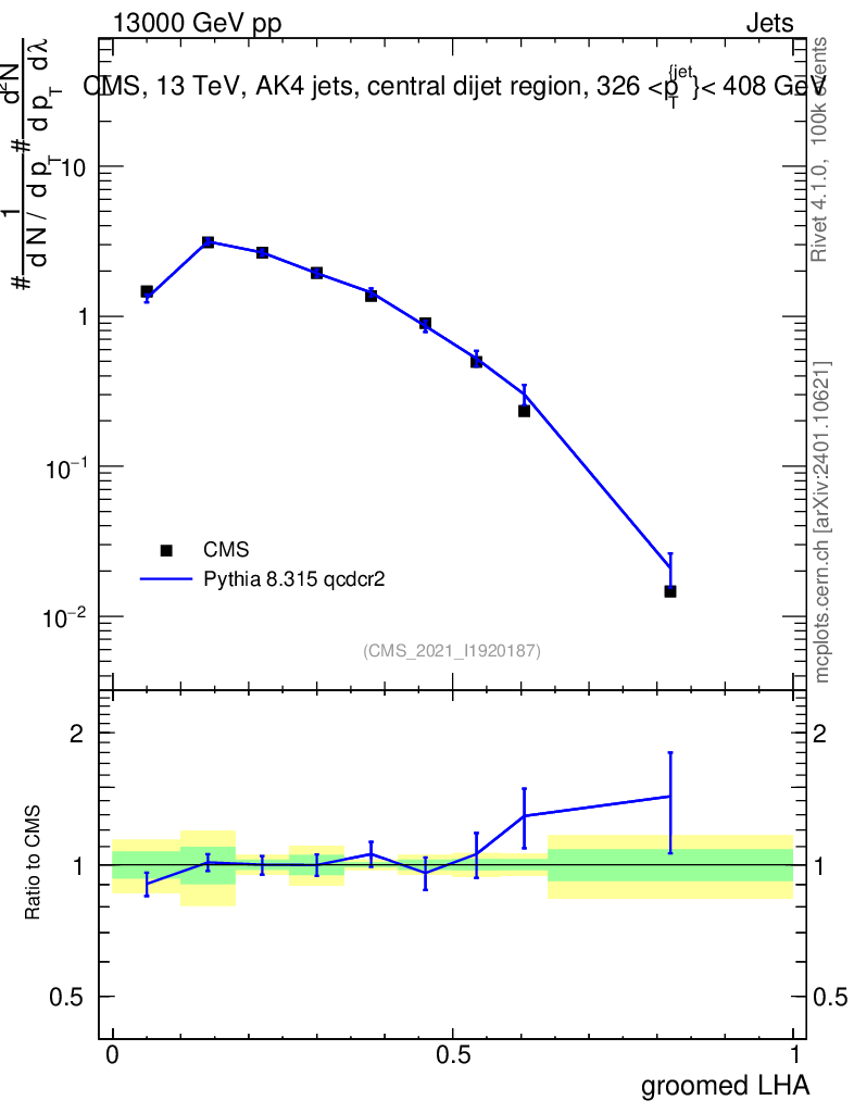Lines: data, pythia8 8.315 qcdcr2 |