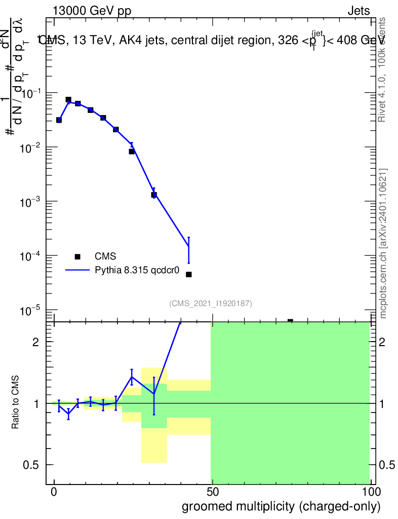 Lines: data, pythia8 8.315 qcdcr0 |