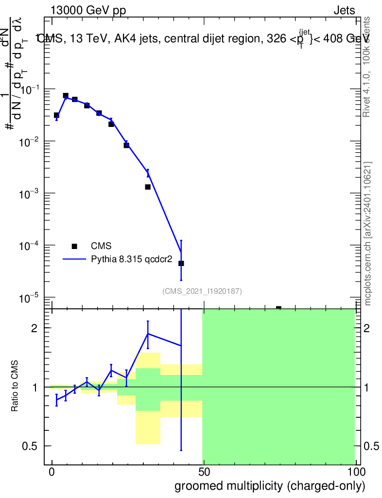 Lines: data, pythia8 8.315 qcdcr2 |
