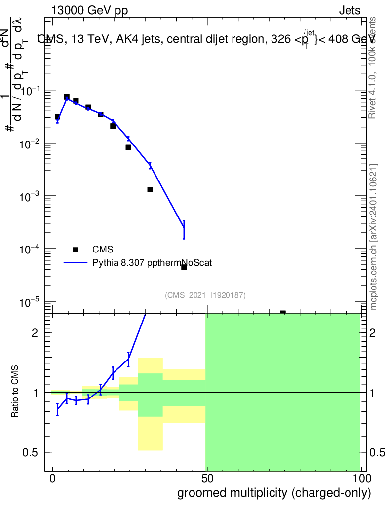 Lines: data, pythia8 8.307 ppthermNoScat |