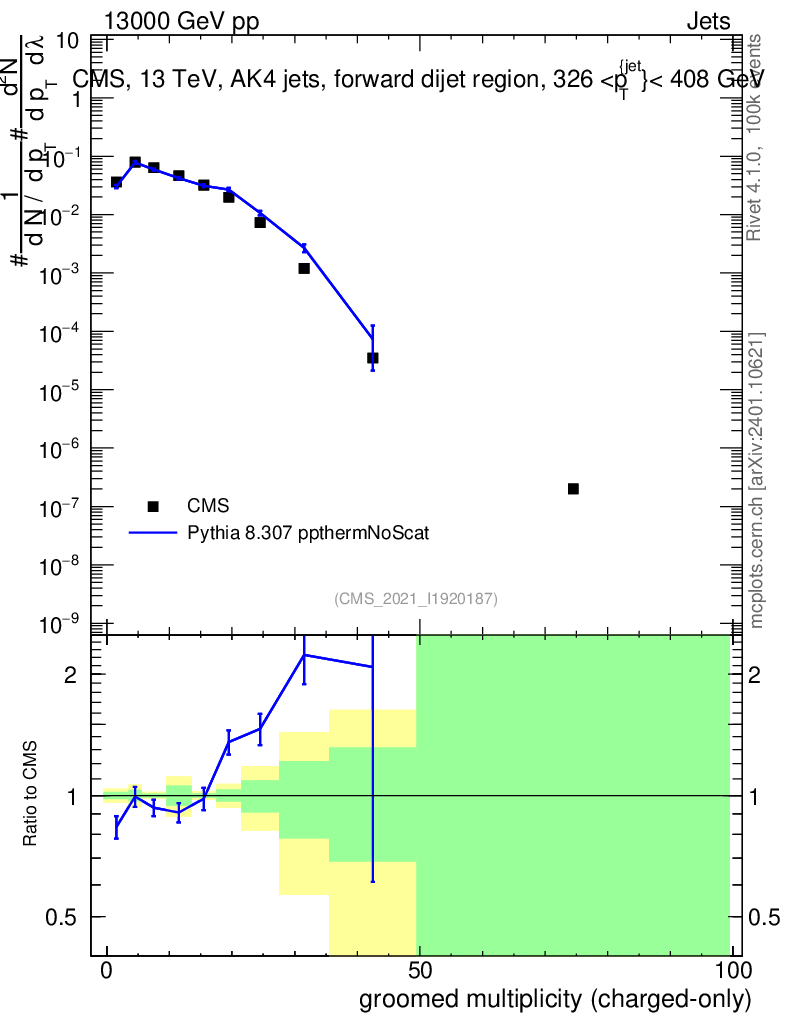 Lines: data, pythia8 8.307 ppthermNoScat |