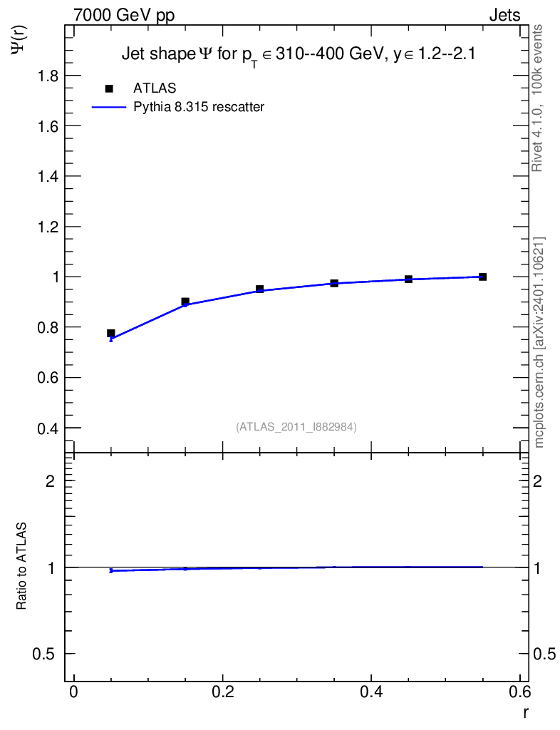 Lines: data, pythia8 8.315 rescatter |