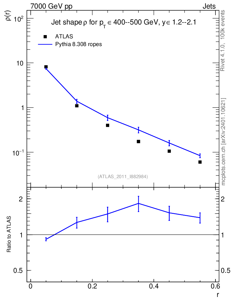 Lines: data, pythia8 8.308 ropes |