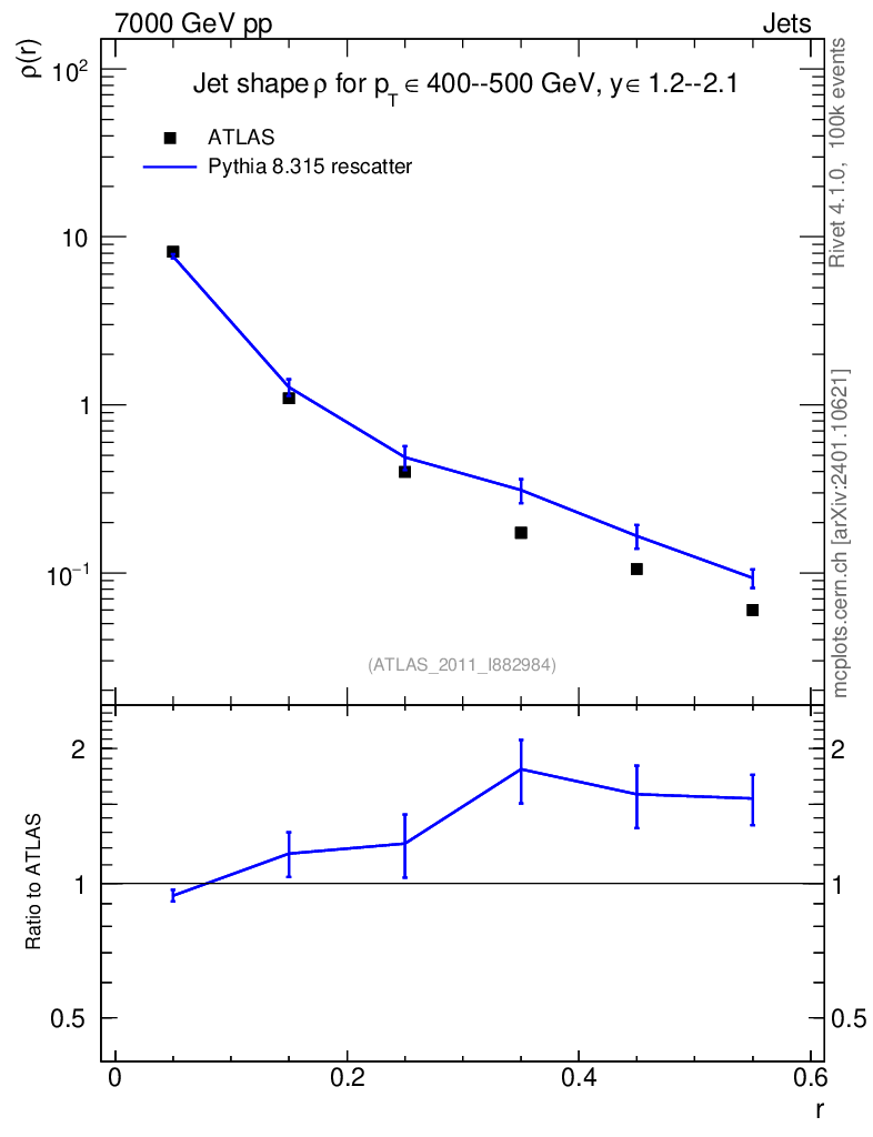 Lines: data, pythia8 8.315 rescatter |