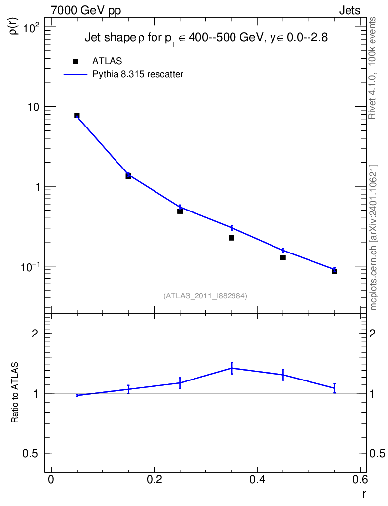 Lines: data, pythia8 8.315 rescatter |