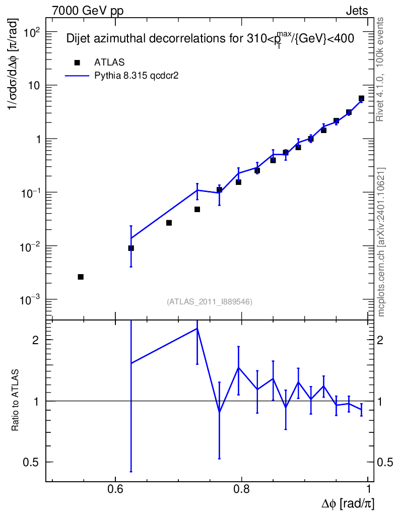 Lines: data, pythia8 8.315 qcdcr2 |