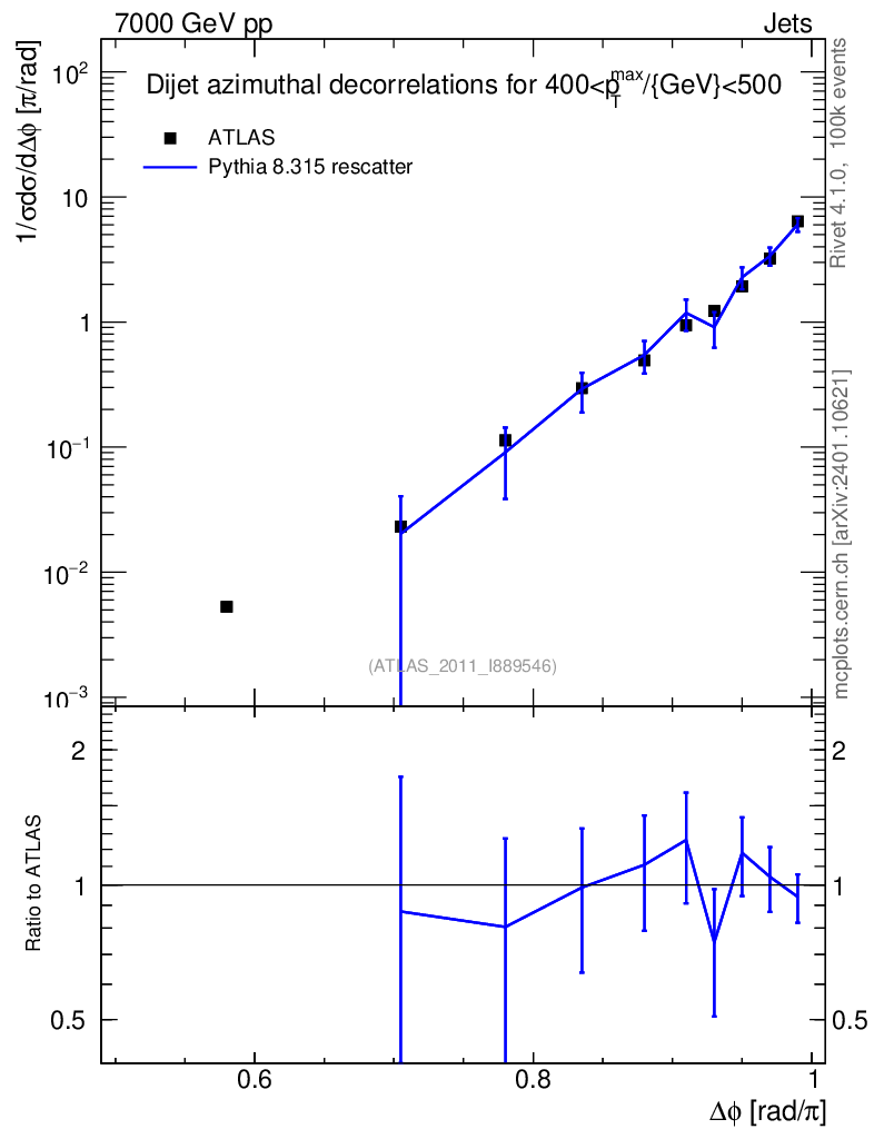 Lines: data, pythia8 8.315 rescatter |