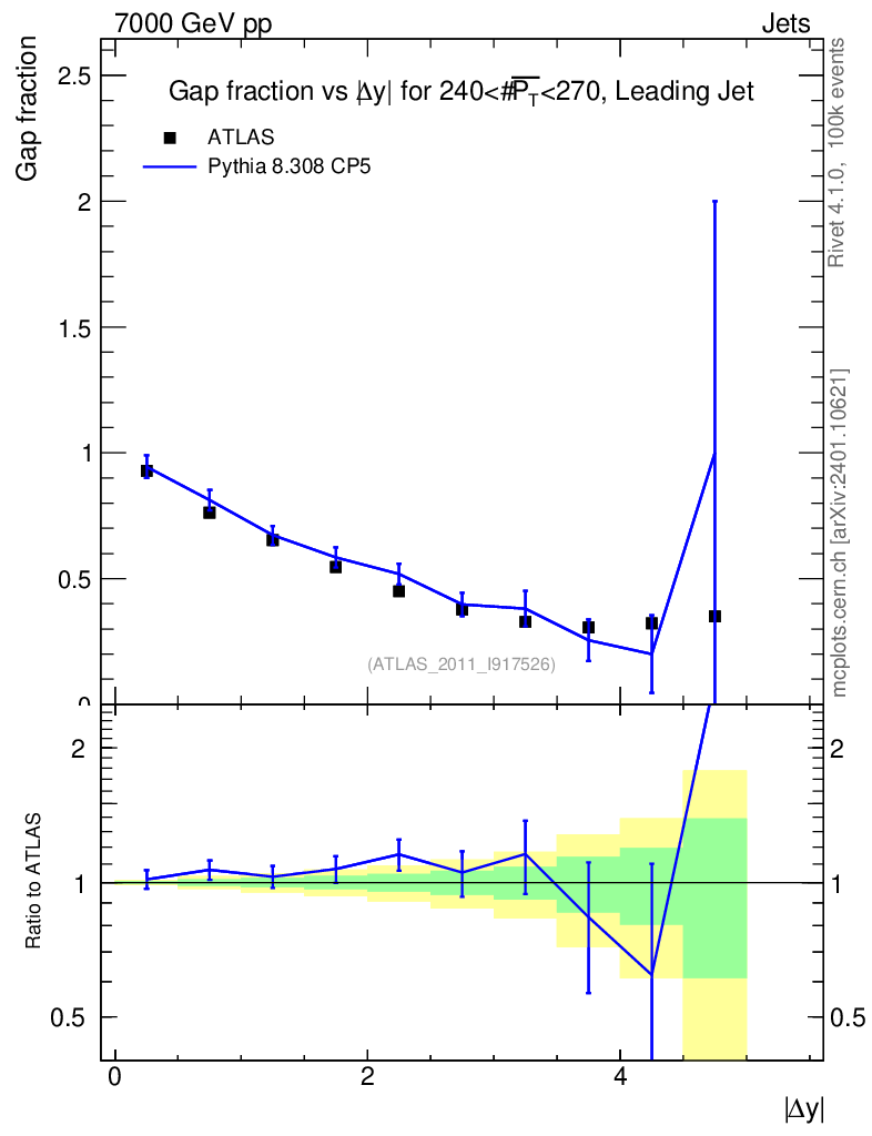 Observable: Gap fraction vs Δy (LJ)