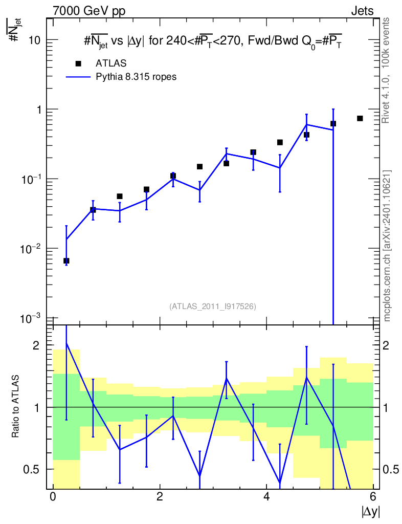 Lines: data, pythia8 8.315 ropes |