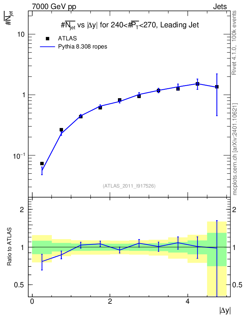 Lines: data, pythia8 8.308 ropes |