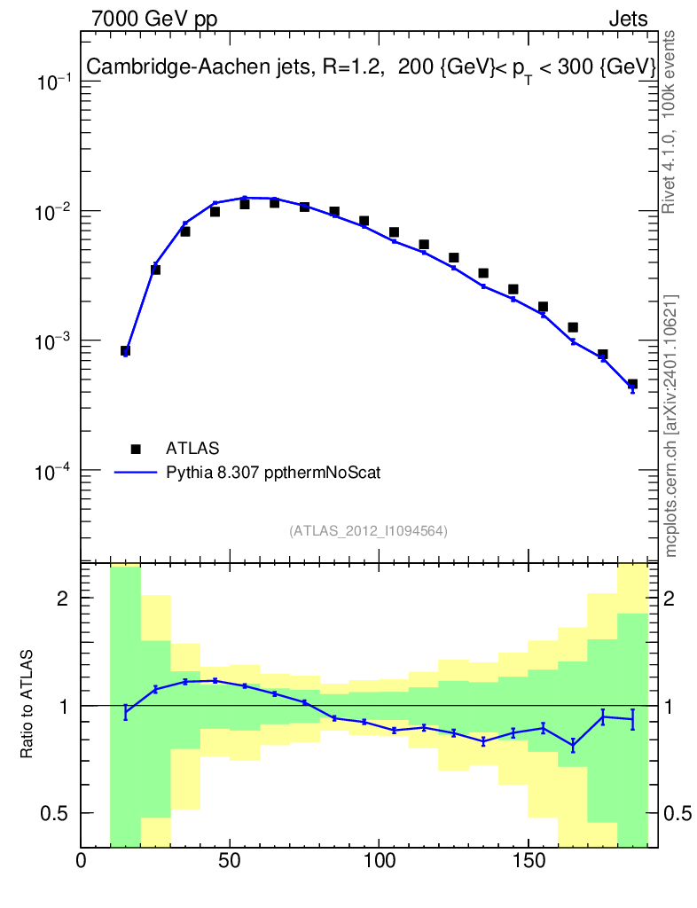 Lines: data, pythia8 8.307 ppthermNoScat |