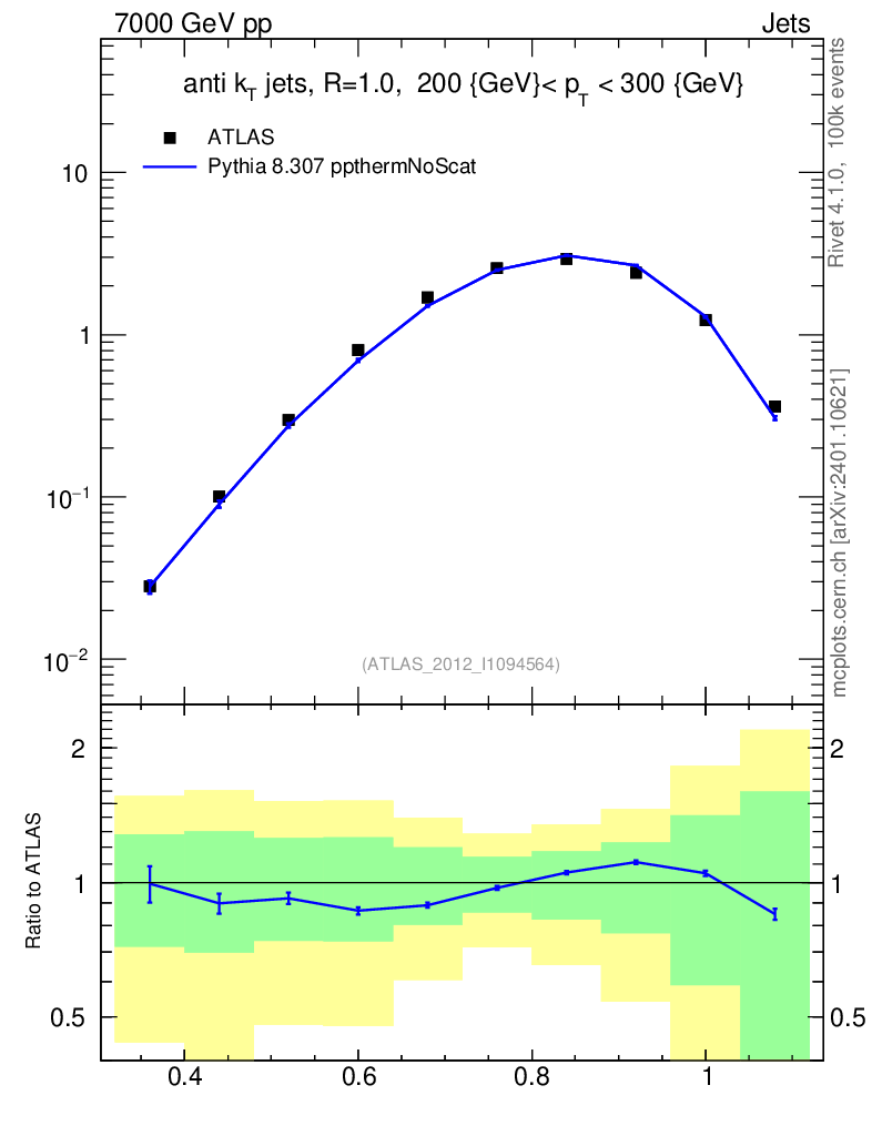 Lines: data, pythia8 8.307 ppthermNoScat |