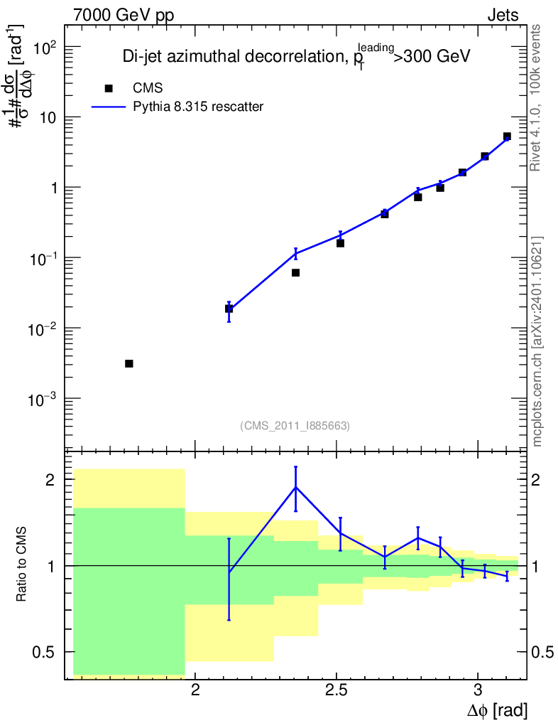 Lines: data, pythia8 8.315 rescatter |