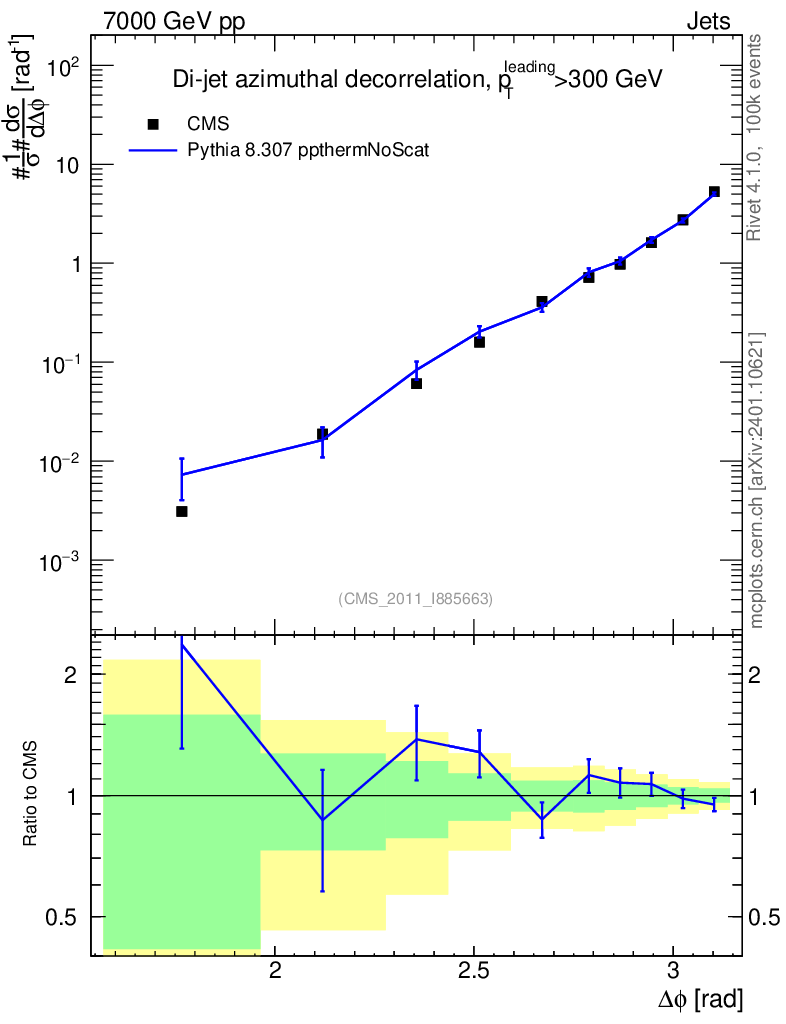 Lines: data, pythia8 8.307 ppthermNoScat |