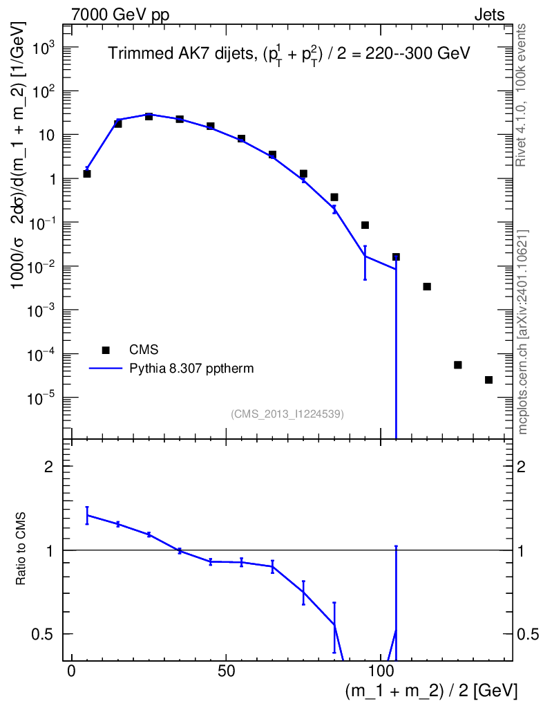 Lines: data, pythia8 8.307 pptherm |