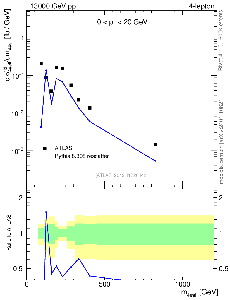 Lines: data, pythia8 8.308 rescatter |