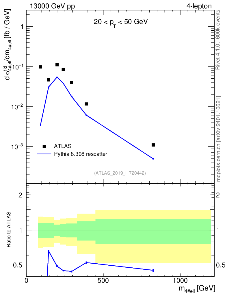 Lines: data, pythia8 8.308 rescatter |