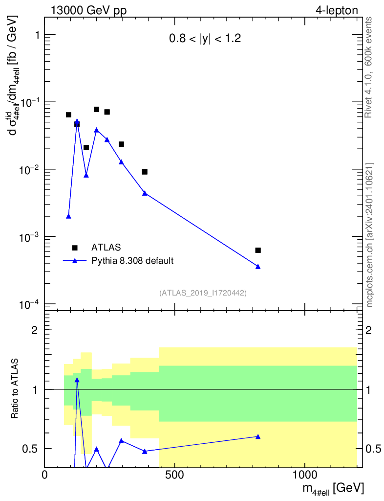 Lines: data, pythia8 8.308 default |