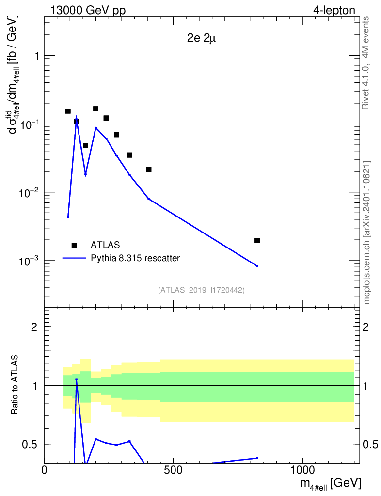 Lines: data, pythia8 8.315 rescatter |