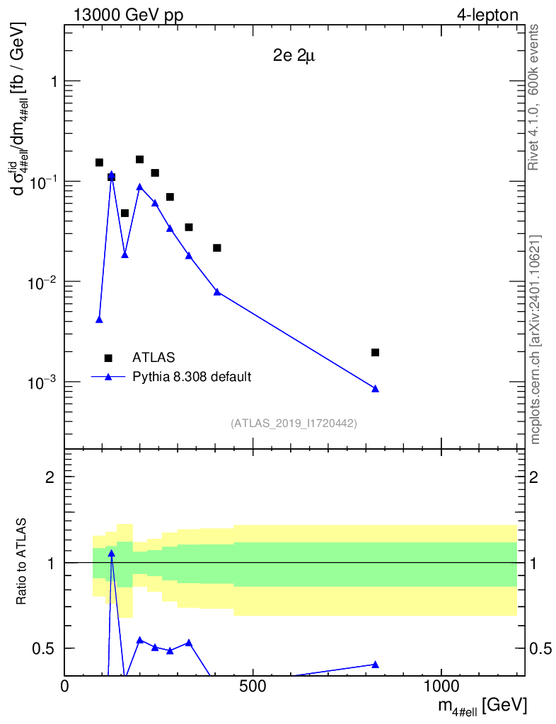 Lines: data, pythia8 8.308 default |